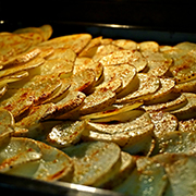 Spread out into a single layer in a large baking tray, then bake for 35 to 40 minutes, or until golden and cooked through